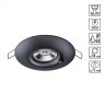 Светильник легко монтируется в подвесные потолки благодаря компактным размерам (диаметр 98 мм, высота 38,5 мм) и врезному отверстию 75 мм. Всего 16 мм глубины встройки позволяют сохранить пространство, не нарушая эстетику помещения. Универсальный черный плафон в стиле «модерн» впишется как в монохромные, так и в контрастные интерьеры.