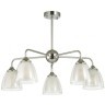 Конструкция люстры рассчитана на 5 ламп с цоколем E14 (мощностью до 60Вт каждая), что обеспечивает равномерное освещение площади до 15 м². Прозрачные плафоны направляют свет вниз, создавая яркие акценты, а металлическая штанга с хромированным покрытием придает изделию устойчивость и долговечность. Высота модели — 460 мм, а диаметр основания — 630 мм, что позволяет гармонично вписаться даже в помещения с невысокими потолками.