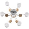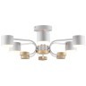 Арматура из металла и дерева придает конструкции прочность, а матовая поверхность в белых и бежевых тонах смягчает свет, создавая уютную атмосферу. Шесть плафонов с цоколем GX53 обеспечивают равномерное освещение, а совместимость с LED-лампами позволяет экономить энергию без ущерба яркости.