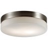 Корпус из матового металла в серебристо-серой гамме дополнен плафоном из матового стекла молочно-белого оттенка. Такая комбинация создает мягкое рассеянное освещение без бликов, охватывая до 3 м². Компактные размеры (диаметр 235 мм, высота 75 мм) позволяют разместить светильник даже в ограниченном пространстве.