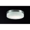 Корпус из матового металла в серебристо-серой гамме дополнен плафоном из матового стекла молочно-белого оттенка. Такая комбинация создает мягкое рассеянное освещение без бликов, охватывая до 3 м². Компактные размеры (диаметр 235 мм, высота 75 мм) позволяют разместить светильник даже в ограниченном пространстве.