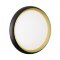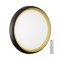 Светильник 7651/EL линии TOFIQ BLACK состоит из металлического основания (базы) и пластикового рассеивателя. Материал рассеивателя - высококачественный пластик марки PMMA 2.0 белого цвета с матовой поверхностью, без текстуры. Пластик обеспечивает светильнику равномерное рассеивание и хорошее светопропускание. Форма плафона: круглая, декорирована ободом из пластика объемной структуры черного и золотого цветов. Степень защиты IP43 позволяет использовать светильник в определенных зонах влажных помещений. В комплект входит заменяемый LED модуль с линзами, мощностью 70Вт, которая соответствует лампе накаливания 610Вт. А также пульт ДУ (с креплением на стену), с помощью которого осуществляется плавное изменение цветовой температуры 3000-6000К, изменение яркости, переход в режим переключения теплого/белого/холодного/ночного света. Светильник имеет функцию "память".