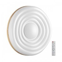 Светильник 7674/EL линии FASS WOOD состоит из металлического основания (базы) и пластикового рассеивателя. Материал рассеивателя - высококачественный пластик марки PMMA 2.0 белого цвета с глянцевой поверхностью и рельефной структурой. Пластик обеспечивает светильнику равномерное рассеивание и хорошее светопропускание. Форма плафона: круглая, декорирована ободом из натурального дерева. Степень защиты IP43 позволяет использовать светильник в определенных зонах влажных помещений. В комплект входит заменяемый LED модуль с линзами, мощностью 70Вт, которая соответствует лампе накаливания 610Вт. А также пульт ДУ (с креплением на стену), с помощью которого осуществляется плавное изменение цветовой температуры 3000-6000К, изменение яркости, переход в режим переключения теплого/белого/холодного/ночного света. Светильник имеет функцию "память".