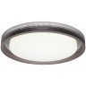 Светильник 7698/DL линии MEDEN состоит из металлического основания (базы) и пластикового рассеивателя. Материал рассеивателя - высококачественный пластик марки PMMA 2.0 белого цвета с матовой поверхностью, без текстуры. Пластик обеспечивает светильнику равномерное рассеивание и хорошее светопропускание. Форма плафона: круглая, декорирована многослойным ободом из пластика цвета кофе у края плафона и прозрачного цвета у его основания. Степень защиты IP43 позволяет использовать светильник в определенных зонах влажных помещений. В комплект входит заменяемый LED модуль с линзами, мощностью 48Вт, которая соответствует лампе накаливания 440Вт. А также пульт ДУ (с креплением на стену), с помощью которого осуществляется плавное изменение цветовой температуры 3000-6000К, изменение яркости, переход в режим переключения теплого/белого/холодного/ночного света. Светильник имеет функцию "память".