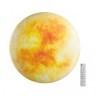 Светильник 7726/EL линии SUN состоит из металлического основания (базы) и пластикового рассеивателя. Материал рассеивателя - высококачественный пластик марки PMMA 2.0 цвета мульти с глянцевой поверхностью, обеспечивающий светильнику равномерное рассеивание и хорошее светопропускание. Форма плафона: круглая, декорирована орнаментом на плафоне с рисунком поверхности Солнца. Рисунок на плафоне выполнен методом цифровой печати по технологии прямого нанесения красок на акриловый лист. С целью предотвращения выцветания красок поверх рисунка наносится слой белой краски. После выдувания плафона при высоких температурах красочный рисунок приобретает стойкость и долговечность. Дополнительно в комплекте: декоративный обод из пластика желтого цвета. Степень защиты IP43 позволяет использовать светильник в определенных зонах влажных помещений. В комплект входит заменяемый LED модуль с линзами, мощностью 70Вт, которая соответствует лампе накаливания 610Вт. А также пульт ДУ (с креплением на стену), с помощью которого осущест