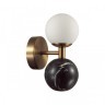 - Универсальностью стиля — матовая латунная арматура с элементами из натурального мрамора дополнена белым акриловым плафоном. Такой дуэт подчеркнет эстетику модерна, неоклассики или минимализма.