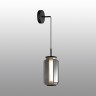 Корпус светильника выполнен из матового металла черного цвета, что придает ему строгость и долговечность. Плафон из глянцевого стекла серого оттенка смягчает световое пятно и добавляет элемент элегантности. Компактные размеры (150 мм в ширину) позволяют гармонично разместить модель даже в небольших пространствах.