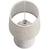 Основание из матовой керамики бежевого оттенка придаёт лампе устойчивость и гармонично сочетается с текстильным абажуром. Плотная ткань плафона равномерно распределяет свет от лампы мощностью 40W (цоколь E14), освещая пространство до 3 м². Компактные габариты — высота 30 см и диаметр 15 см — позволяют разместить светильник даже на узкой поверхности.