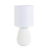 Основание светильника выполнено из керамики с матовой поверхностью, что придаёт устойчивость и подчёркивает минималистичную эстетику. Компактные размеры (270 мм в высоту, 130×130 мм в основании) позволяют разместить лампу даже на узкой поверхности — например, прикроватной тумбе или журнальном столике.