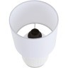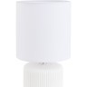 Арматура из матовой керамики белого цвета придаёт лампе прочность и устойчивость, а тканевый абажур с матовой поверхностью мягко рассеивает свет, создавая уютную атмосферу. Модель поддерживает стандартные лампы с цоколем E14 — вы можете выбрать тёплое или нейтральное свечение, адаптируя освещение под свои задачи.