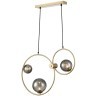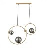 Светильник гармонично впишется как в монохромные, так и в тёплые интерьеры благодаря нейтральной серой палитре плафонов и золотистому отливу арматуры. Его универсальность подчеркивает возможность использования в разных комнатах — от рабочего кабинета до зоны кухонного острова. Простота конструкции сочетается с продуманной эргономикой: подвес легко регулировать по высоте, адаптируя под особенности помещения.
