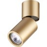 Корпус и плафон изготовлены из матового металла золотистого оттенка, что создает мягкое рассеянное свечение. Благодаря диаметру 63 мм и высоте 159 мм светильник не перегружает потолок, сохраняя визуальную легкость. Угол поворота конструкции — 60°, что позволяет направлять световой поток в нужную зону.