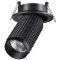 Конструкция светильника разработана для трековых систем. Компактные габариты (57×80×300 мм) позволяют монтировать его даже в узких зонах, например, над барной стойкой или рабочим столом. Абажур и арматура выполнены из прочного металла с матовым покрытием — это защищает от коррозии и упрощает уход.