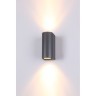 Корпус светильника выполнен из металла, что обеспечивает прочность и устойчивость к перепадам температур. Два светодиодных источника с цоколем GU10 создают равномерное освещение на площади до 4 м², подчеркивая текстуру стен, деревьев или малых архитектурных форм. Защита IP54 гарантирует бесперебойную работу даже в дождь или снегопад.